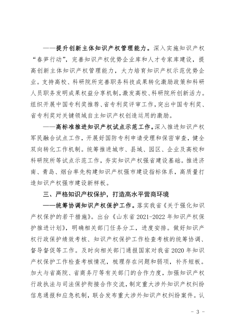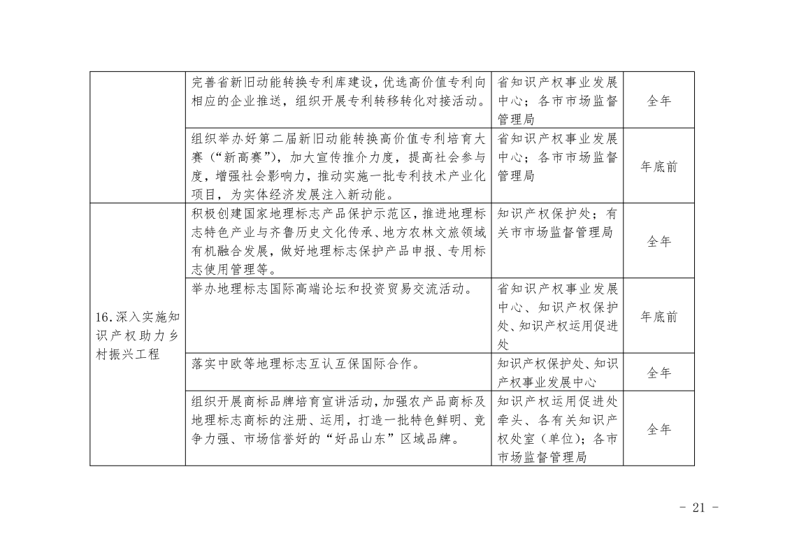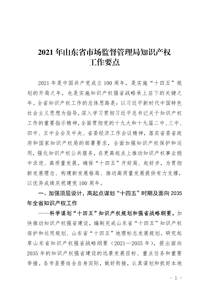 《2021年山東省市場監(jiān)督管理局知識產(chǎn)權工作要點》的通知印發(fā)