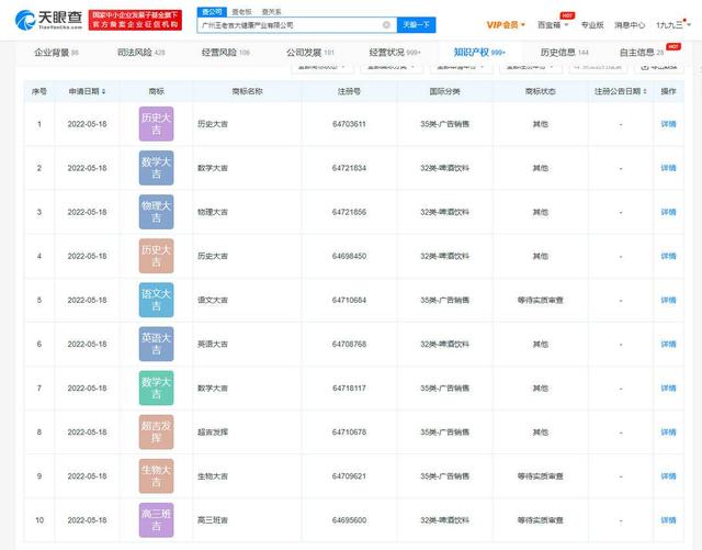 此外,許多商家還將高考與自己的品牌結(jié)合,利用熱點(diǎn)宣傳自家產(chǎn)品。必勝客曾申請“高考必勝”商標(biāo),不過這一商標(biāo)已被駁回;元?dú)馍衷暾堊浴皾M分高粽”商標(biāo),目前其狀態(tài)也變更為駁回復(fù)審;2022年高考前不久,王老吉申請“萬試大吉”“超吉發(fā)揮”等商標(biāo),目前商標(biāo)狀態(tài)多為等待實(shí)質(zhì)審查。