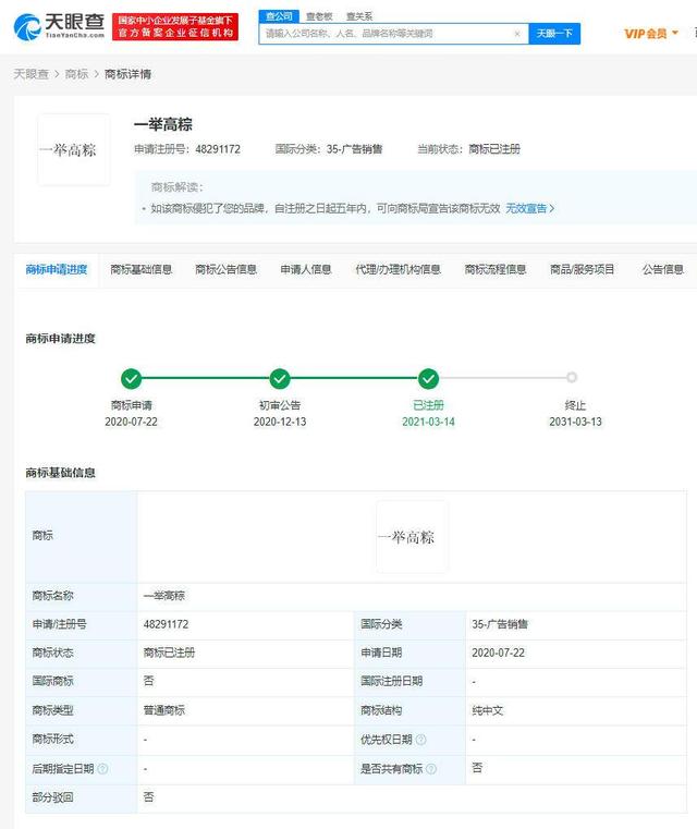 除了考生和家長對諧音??駸嶙放跬猓S多商家也申請商標(biāo)跟風(fēng)玩梗。上述“旗開得勝”“超常發(fā)揮”“一舉高粽”“一舉奪葵”“金榜蹄名”“紫腚能行”均已被搶注商標(biāo),其中部分商標(biāo)已完成注冊。